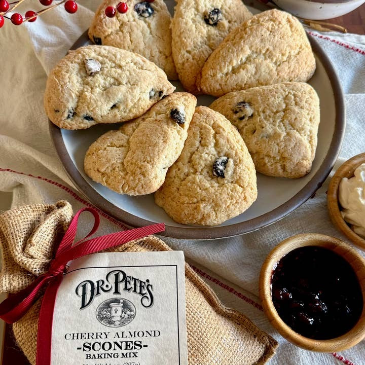 George Washington could not tell a lie...he loved a cherry almond scone served with hot tea! You will too!! This scone is filled with tart red cherries and the hint of almond which is the perfect mate in this flavorful scone! As with all our scone mixes you just add a cup of heavy cream, pat dough to about an inch thick and cut in wedges. About 16 minutes later, you will be pulling these moist scones out and they will be ready to enjoy! No Lie!!! Hand Crafted in small batches in Ailey, GA.