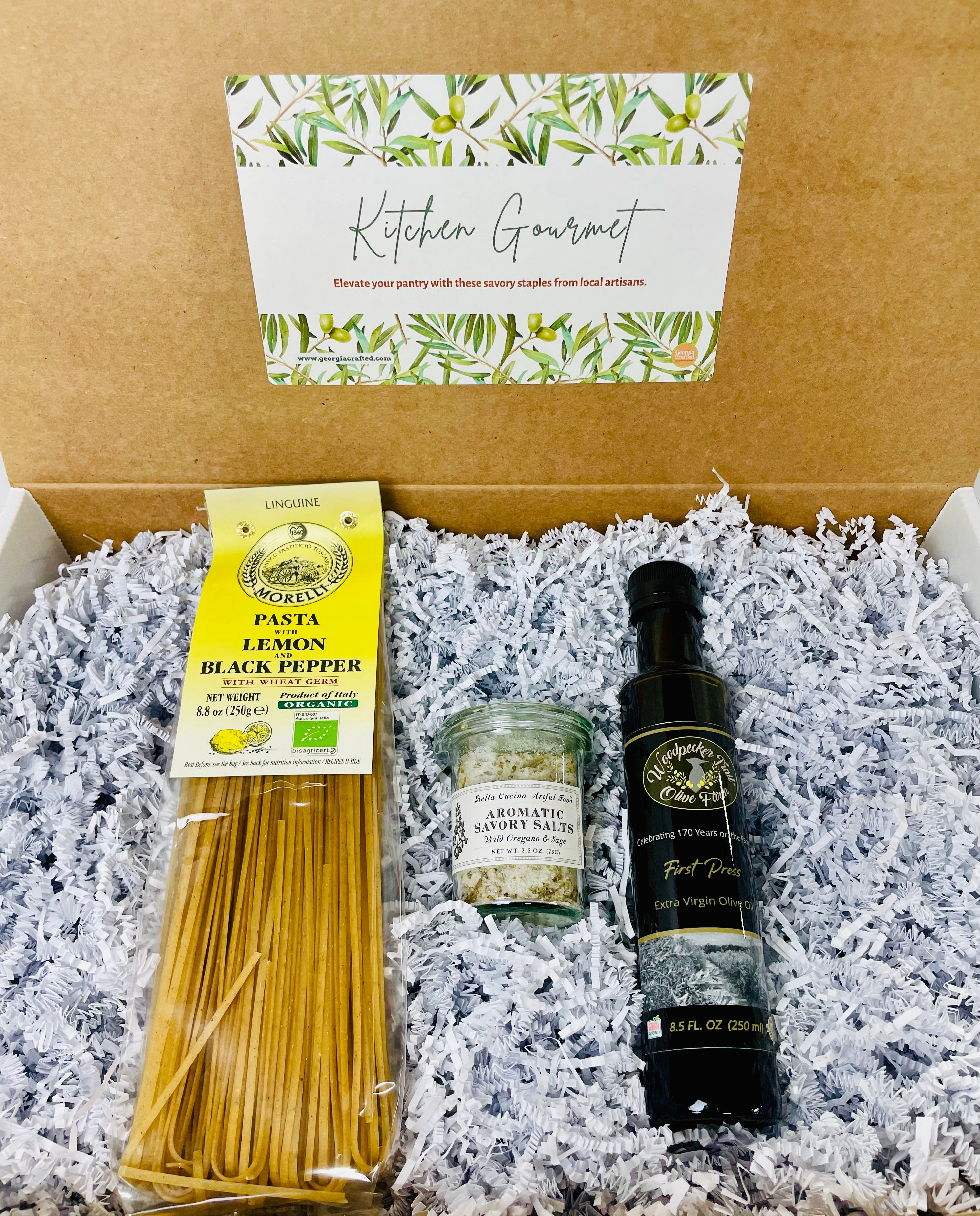Perfect for food lovers, home chefs, or anyone who appreciates handcrafted ingredients, the Kitchen Gourmet Gift Box celebrates the taste and craftsmanship of Georgia in every bite. Whether given as a gift or enjoyed in your own kitchen, it’s a delicious way to savor locally made gourmet goodness.