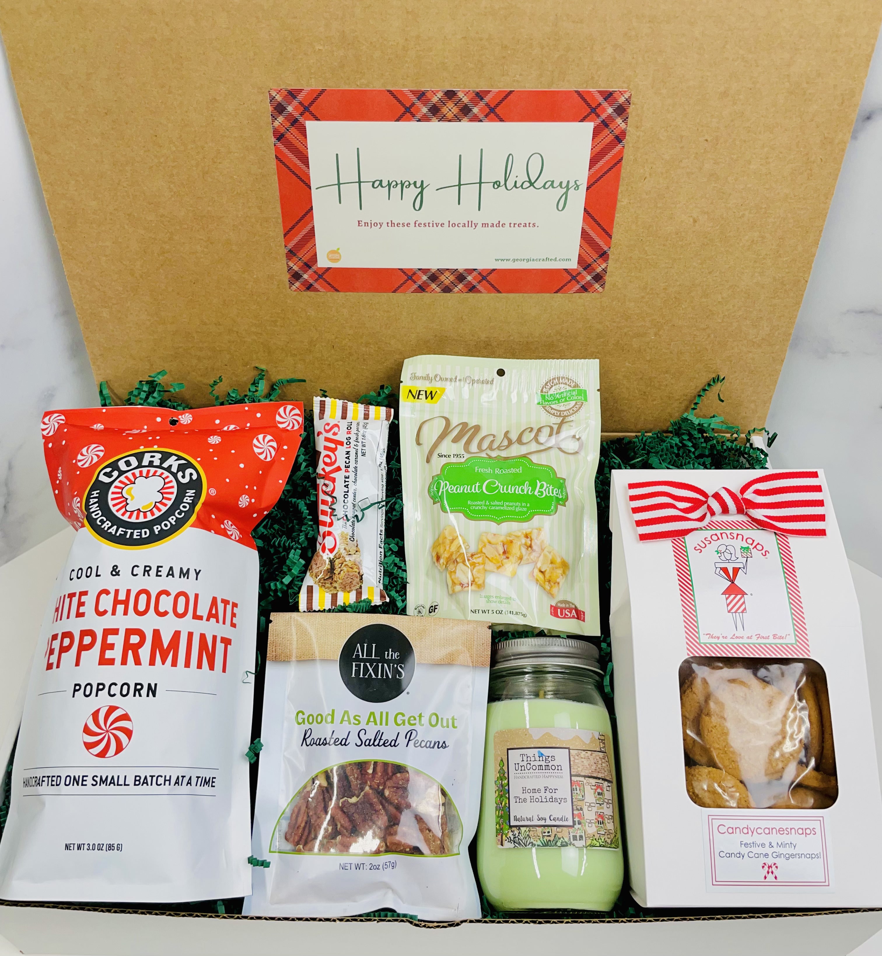 Celebrate the season with a taste of Georgia! Our 2025 Holiday Gift Box is filled with delicious, locally made treats that are sure to bring holiday cheer. Each box features: