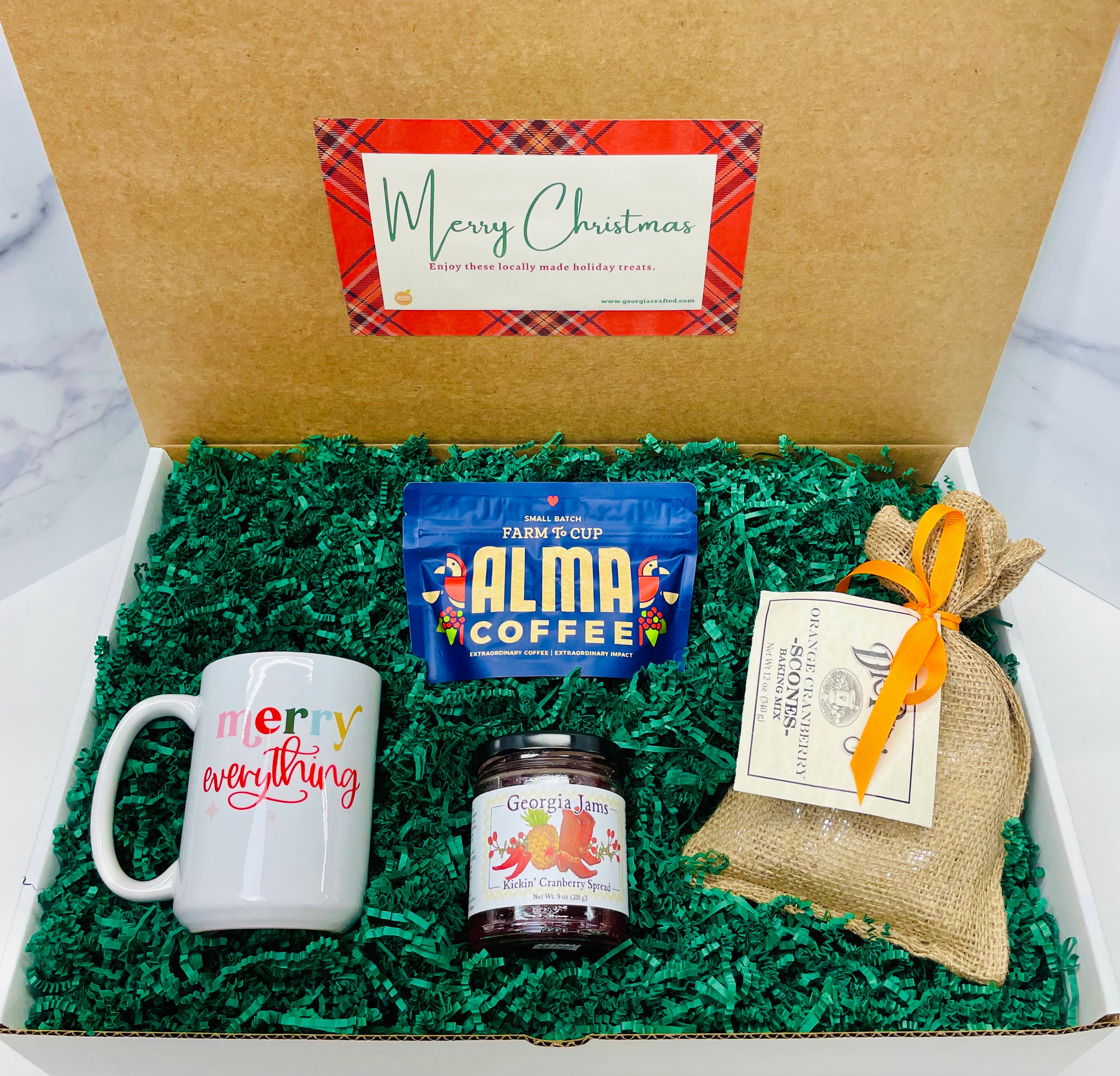 ring the magic of Christmas morning to someone’s doorstep with this cozy, comforting trio of Georgia-made favorites. Perfect for slow mornings, holiday traditions, and anyone who loves starting the day with something warm, sweet, and festive.