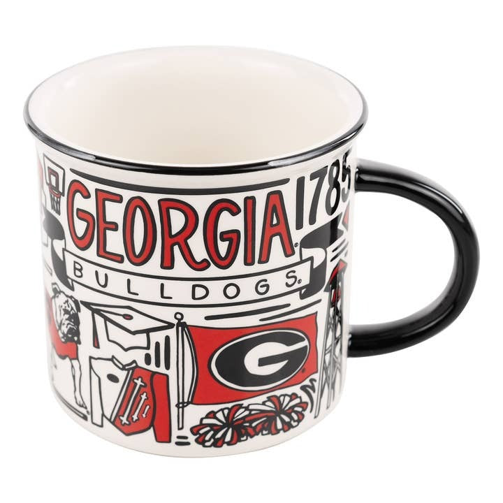 Sip in Bulldog style with this ceramic coffee cup decked out in University of Georgia spirit! It is decorated with a collage of the sights and sounds of this incredible team! Fans, students, and alumni alike will treasure this mug that holds 18 oz of your favorite coffee, tea, or cocoa! It makes a thoughtful gift for the Bulldog fans that start their day off right with a serving of team pride!