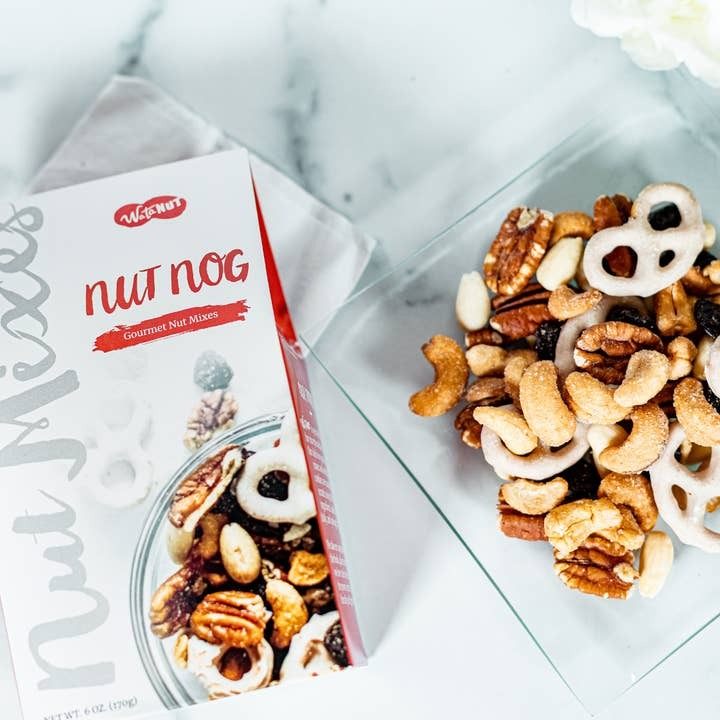 We put a little cheer in this one-of-a kind mix. Inspired by our favorite holiday libation, Nut Nog blends Rum cashews, creamy cinnamon yogurt pretzels, sour cherries, blanched almonds and roasted pecans to fill you with glee.